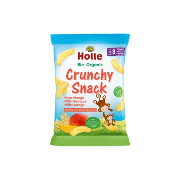 Puffet hirsesnacks fra Holle er laget av glutenfri økologisk hirse, og har en perfekt størrelse for små barnehender.